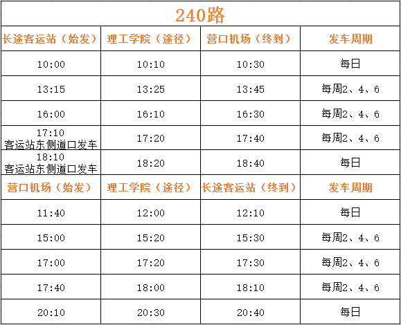 公汽公司從機場辦公室獲悉:從2017年8月1日起,營口藍旗機場開辟“營口—濰坊—西安”新航線。針對上述情況,為方便市民出行,經(jīng)公司研究現(xiàn)提出調(diào)整機場240路運營班次。具體內(nèi)容如下: